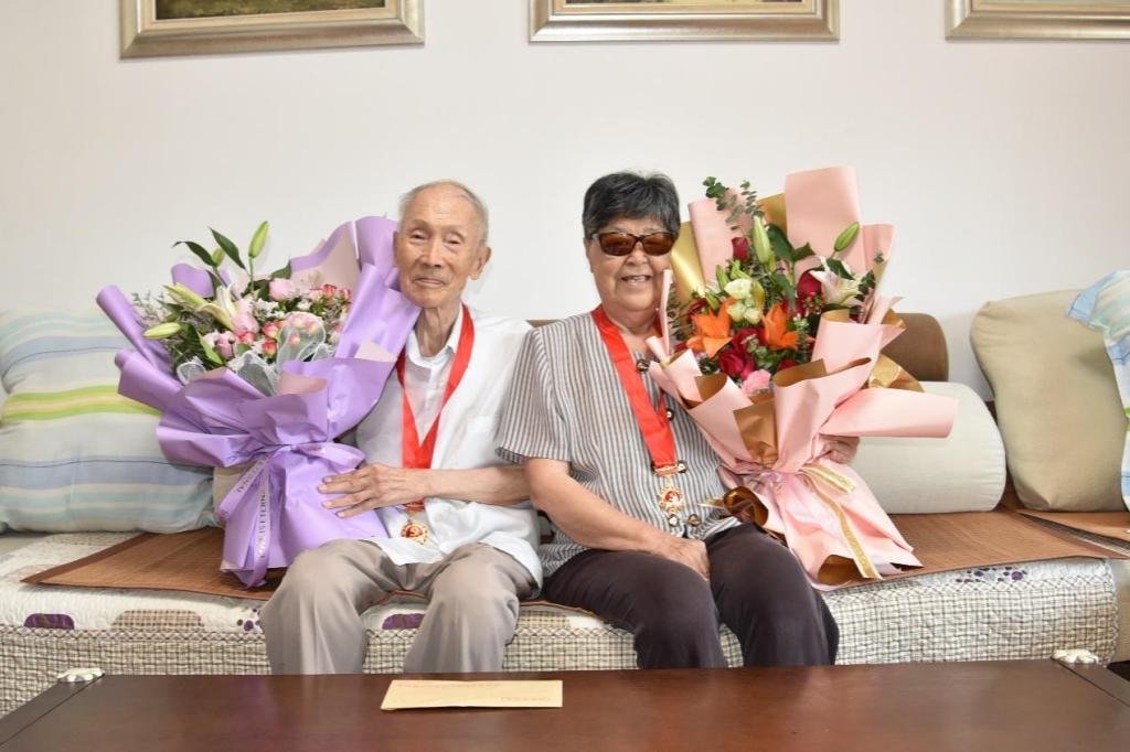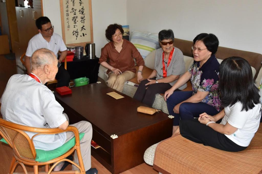 來到兩位退休教師家中,周建波副書記一行四人熱情向兩位老同志問好,周建波為他們莊嚴(yán)佩戴了“光榮在黨50年”紀(jì)念章,并代表學(xué)校向他們表達(dá)了慰問,向他們長期以來為黨、為學(xué)校做出的貢獻(xiàn)表示衷心感謝。隨后,四位領(lǐng)導(dǎo)同兩位老同志進(jìn)行了親切愉快的交流。