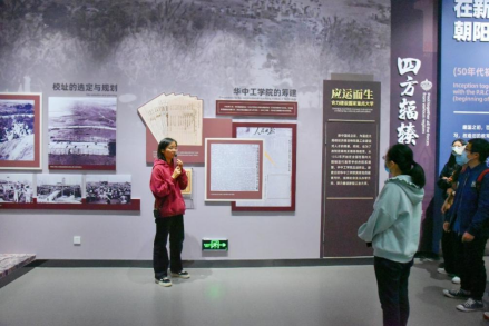 隨后,全體成員共同前往華中科技大學(xué)校史館進(jìn)行參觀。在講解員的指引下,大家按照校史時(shí)間線重溫華中大70年來取得的歷史性成就。從華中工學(xué)院,到華中理工大學(xué),再到華中科技大學(xué),難忘的場景形象通過高科技的手段再現(xiàn),讓同學(xué)們深刻感受到了學(xué)校在困境中誕生,在曲折中前行,在奮斗中崛起,在發(fā)展中輝煌的崢嶸歲月。幾代華中大人走過了一段極不平凡的道路。這一系列艱辛歷程,激勵著一代又一代華中大學(xué)子砥礪前行,發(fā)奮圖強(qiáng)。
