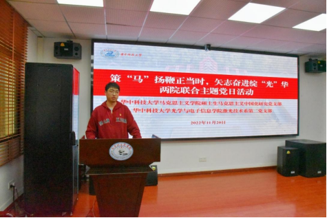 為深入貫徹落實(shí)黨的二十大精神,進(jìn)一步推進(jìn)校史校情學(xué)習(xí)教育,2022年11月20日下午,馬克思主義學(xué)院碩士生馬克思主義中國化研究黨支部和光學(xué)與電子信息學(xué)院激光技術(shù)系第二黨支部于東七樓203教室與校史館開展聯(lián)合主題黨日活動。活動由馬中化黨支部副書記陳澤宇同志主持,馬中化黨支部研一黨小組、激光技術(shù)系第二黨支部黨員與入黨積極分子參與。