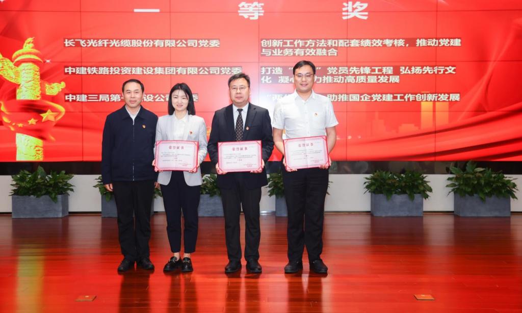 研討環(huán)節(jié)后,第二屆企業(yè)黨建創(chuàng)新案例頒獎儀式舉行。喻立平、趙昆、王道勇、岳奎分別向獲獎單位頒獎。