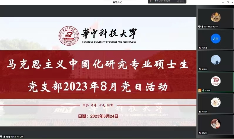 (通訊員:劉之琳)為深入學(xué)習(xí)貫徹習(xí)近平新時(shí)代中國特色社會(huì)主義思想,推動(dòng)理論學(xué)習(xí)落實(shí)落細(xì),2023年8月24日晚,馬克思主義學(xué)院馬克思主義中國化研究專業(yè)碩士生黨支部在線上開展“深學(xué)細(xì)悟新思想,奮楫揚(yáng)帆再篤行”8月主題黨日活動(dòng)。會(huì)議由支部副書記陳澤宇同志主持,全體黨員同志參加。