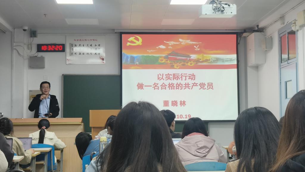 第四講由董曉林老師主講。課程一開始董老師便拋出一個意蘊深刻的問題“為什么說做一名優(yōu)秀黨員容易,但做一名合格黨員卻很難呢?”隨后,董曉林老師以“以實際行動做一名合格黨員”為主題,不僅帶領(lǐng)班級成員重溫入黨誓詞,而且通過設(shè)置互動環(huán)節(jié),結(jié)合自身經(jīng)歷分享,詮釋了筑牢初心使命的重大意義。最后,董老師以三個“模范行動”為本次課程收尾,期望學(xué)員們都能“做一只高飛的領(lǐng)頭雁”。