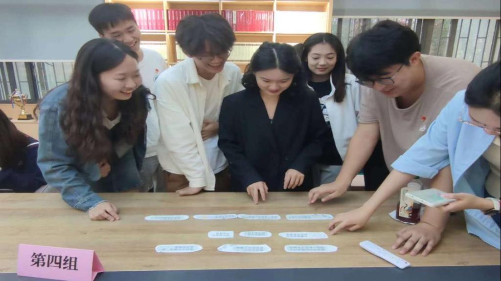 隨后,黨支部書記劉孟迪組織參會黨員進行金句學習互動。該環(huán)節(jié)采用趣味拼圖的形式,以“學習強國”平臺中“習近平文化思想金句專欄”為題庫,各位同志以小組為單位完成句子組合。通過本次互動,兩支部的黨員加深了溝通交流,理論學習成果也得以進一步鞏固。