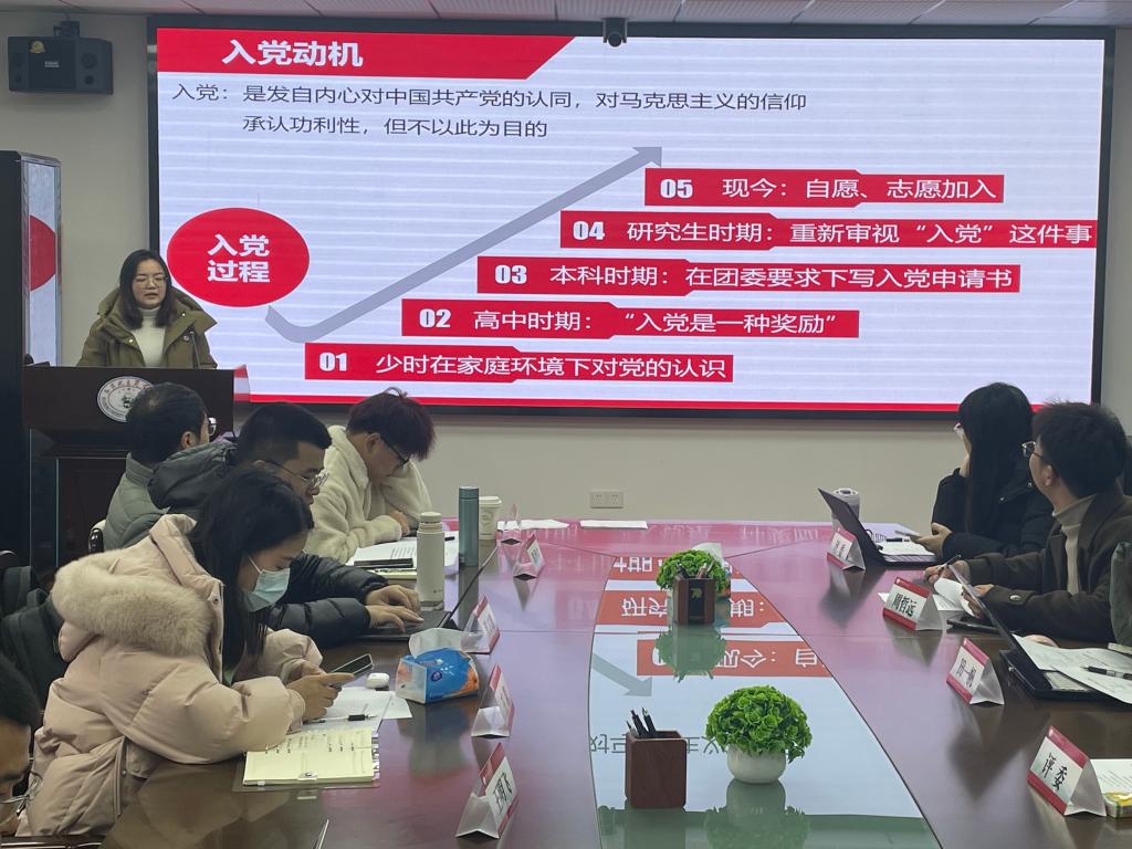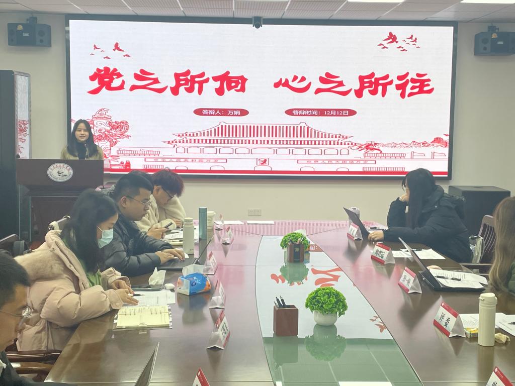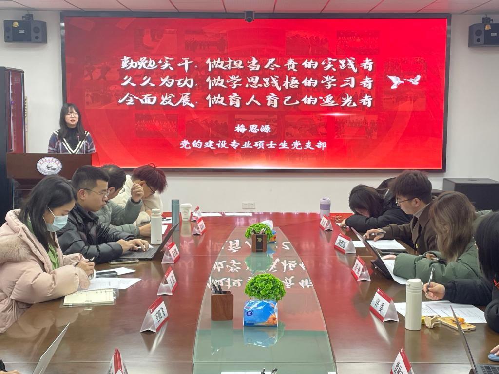 (通訊員:許英健)為進(jìn)一步做好學(xué)院黨員發(fā)展工作,12月12日上午,馬克思主義學(xué)院2023年下半年擬發(fā)展對(duì)象考察大會(huì)于東七樓203會(huì)議室順利召開(kāi)。馬克思主義學(xué)院黨委副書(shū)記、副院長(zhǎng)王明飛,院團(tuán)委書(shū)記、黨建輔導(dǎo)員王茜出席此次考察大會(huì),會(huì)議由學(xué)院研究生黨建服務(wù)中心負(fù)責(zé)人紀(jì)博妍主持。
