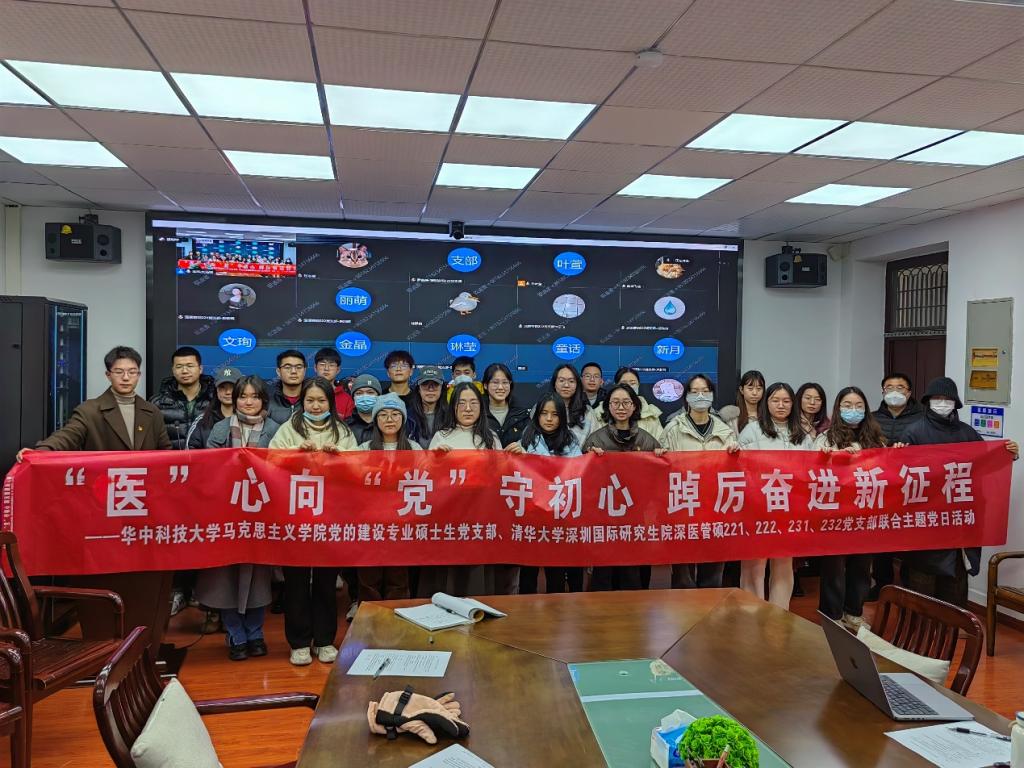 (通訊員:周哲遠 章和毅 圖片:李柯依 雷思雨 章和毅) 以“‘醫(yī)’心向‘黨’守初心 踔厲奮發(fā)新征程”為主題,12月21日晚,馬克思主義學(xué)院黨的建設(shè)專業(yè)碩士生黨支部與清華大學(xué)深圳國際研究生院深醫(yī)管碩221、222、231、232四個黨支部聯(lián)合開展12月主題黨日暨高校云共建。清華大學(xué)深研院學(xué)工辦張丹副教授、華中科技大學(xué)馬院黨委副書記、副院長王明飛、兩校各支部黨員參與共建。兩校的雷思雨和肖葉萱同志共同主持了此次活動。