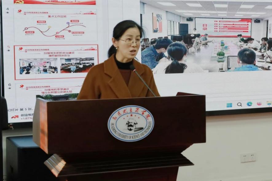 “德法”黨支部書記趙志堅(jiān)對(duì)2023年度支部每月常規(guī)工作進(jìn)行了梳理,分享了推進(jìn)理論宣講、青年教師成長(zhǎng)沙龍等創(chuàng)新活動(dòng)的心路歷程,并就支部探索“黨建-業(yè)務(wù)”融合發(fā)展的具體做法進(jìn)行匯報(bào)。