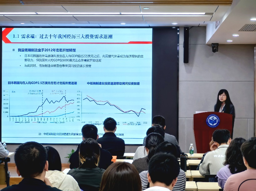 隨后,丁滋芳老師向大家解讀2024年《政府工作報(bào)告》并分享學(xué)習(xí)體會。她講到,從2022至2024年的《政府工作報(bào)告》中可以看出,產(chǎn)業(yè)政策在政府工作的重要性不斷提高:2024年產(chǎn)業(yè)政策工作任務(wù)次序上升至首位,且自2022年以來次序不斷提前;新增“加快發(fā)展新質(zhì)生產(chǎn)力”表述,其重大戰(zhàn)略地位凸顯;新增“深入實(shí)施科教興國戰(zhàn)略”表述,并位于工作任務(wù)第二位,進(jìn)一步體現(xiàn)了人才建設(shè)配套在推動產(chǎn)業(yè)發(fā)展中的重要作用。丁滋芳老師強(qiáng)調(diào),新質(zhì)生產(chǎn)力是2024年產(chǎn)業(yè)發(fā)展主要方向,為產(chǎn)業(yè)發(fā)展帶來新視角,極大拓展了國家產(chǎn)業(yè)鏈發(fā)展和投資方向。