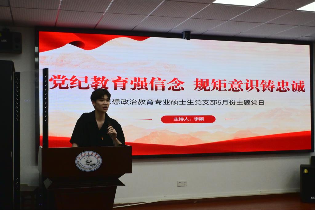 (通訊員:劉孟迪)5月23日晚,馬克思主義學(xué)院思想政治教育專業(yè)碩士生黨支部五月黨日活動(dòng)在東七樓203會(huì)議室舉行。為貫徹中共中央辦公廳《關(guān)于在全黨開展黨紀(jì)學(xué)習(xí)教育的通知》,支部本月黨日活動(dòng)以“黨紀(jì)教育強(qiáng)信念,規(guī)矩意識(shí)鑄忠誠(chéng)”為主題進(jìn)行集體學(xué)習(xí),活動(dòng)由支部組織委員李碩主持。