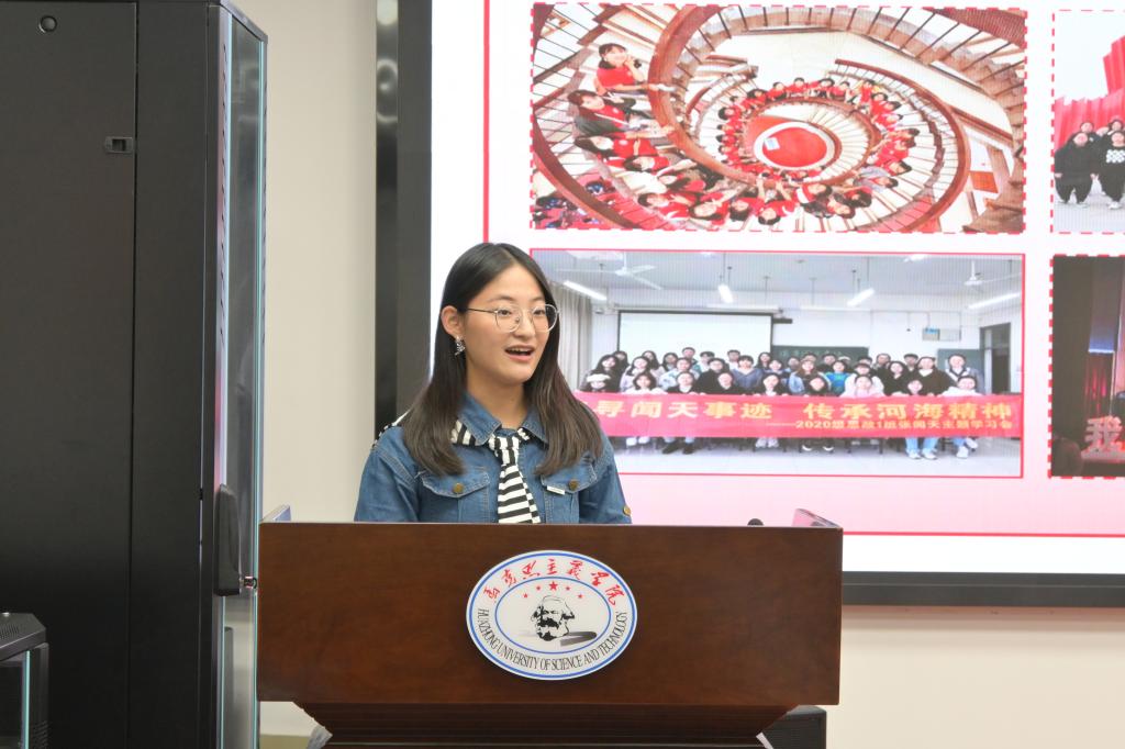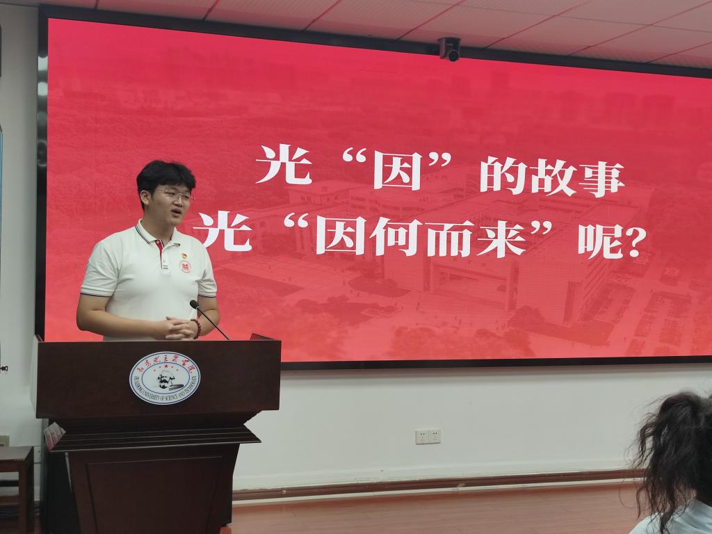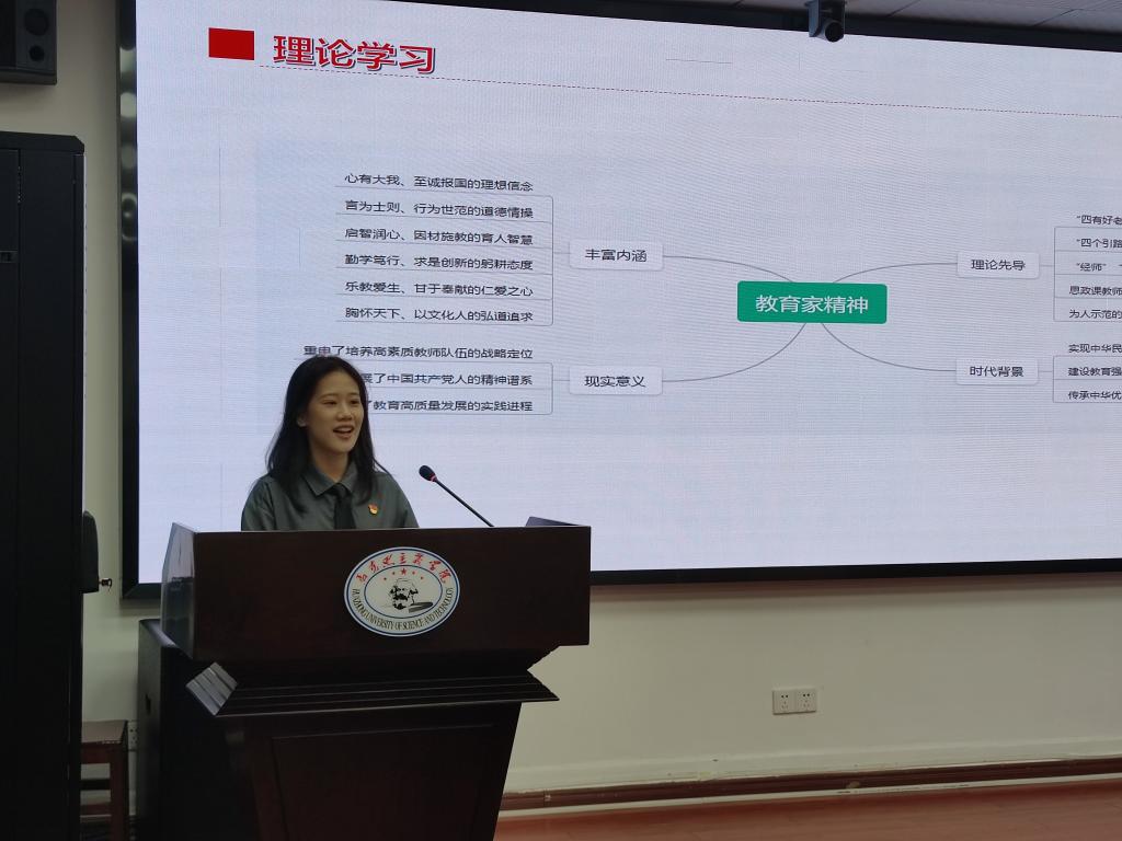 會議伊始,劉孟迪領(lǐng)學(xué)《中共中央 國務(wù)院關(guān)于弘揚(yáng)教育家精神加強(qiáng)新時代高素質(zhì)專業(yè)化教師隊(duì)伍建設(shè)的意見》(以下簡稱《意見》),她運(yùn)用思維導(dǎo)圖概括了《意見》的具體內(nèi)容,并就教育家精神的時代背景、豐富內(nèi)涵、理論先導(dǎo)和現(xiàn)實(shí)意義進(jìn)行重點(diǎn)講解。隨后,研究生紅色理論學(xué)講團(tuán)團(tuán)長趙羨文以《光“因”的故事——教育、科技、人才在發(fā)展新質(zhì)生產(chǎn)力中的良性循環(huán)》為題和與會同志分享了華中科技大學(xué)以一束激光點(diǎn)亮“武漢·中國光谷”并與其共生、共興、共榮的奮斗歷程,論述了在新質(zhì)生產(chǎn)力發(fā)展中暢通教育、科技、人才良性循環(huán)的重要性。
