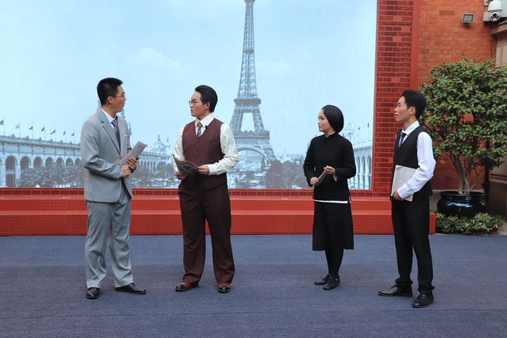 開幕式以我校藝術(shù)學(xué)院學(xué)生演奏的迎賓序曲《我愛我的祖國》開始,依托展覽創(chuàng)作的原創(chuàng)獨(dú)幕音畫劇《蒙達(dá)尼之光》也在開幕式中同步上演。該劇由我院夏增民教授作為指導(dǎo)、我院2023級(jí)碩士研究生陳妍妍作為編劇進(jìn)行創(chuàng)作,并由生命學(xué)院生物科學(xué)中法班學(xué)生與我校戲劇團(tuán)學(xué)生聯(lián)袂出演,集結(jié)三院群力,生動(dòng)詮釋留法勤工儉學(xué)運(yùn)動(dòng)內(nèi)涵與教育意義,用文藝之美點(diǎn)燃黨史之光。劇本以大學(xué)生真實(shí)赴法研學(xué)交流的經(jīng)歷為背景,從時(shí)空對(duì)望到異國求學(xué),從道路探索到希望萌芽,音畫流轉(zhuǎn)與情節(jié)起伏相互配合,帶領(lǐng)觀眾重走蔡和森、向警予、李維漢等旅歐英杰的赴法初心之路,傳遞先輩們心懷家國、為民族復(fù)興而奮斗的精神。