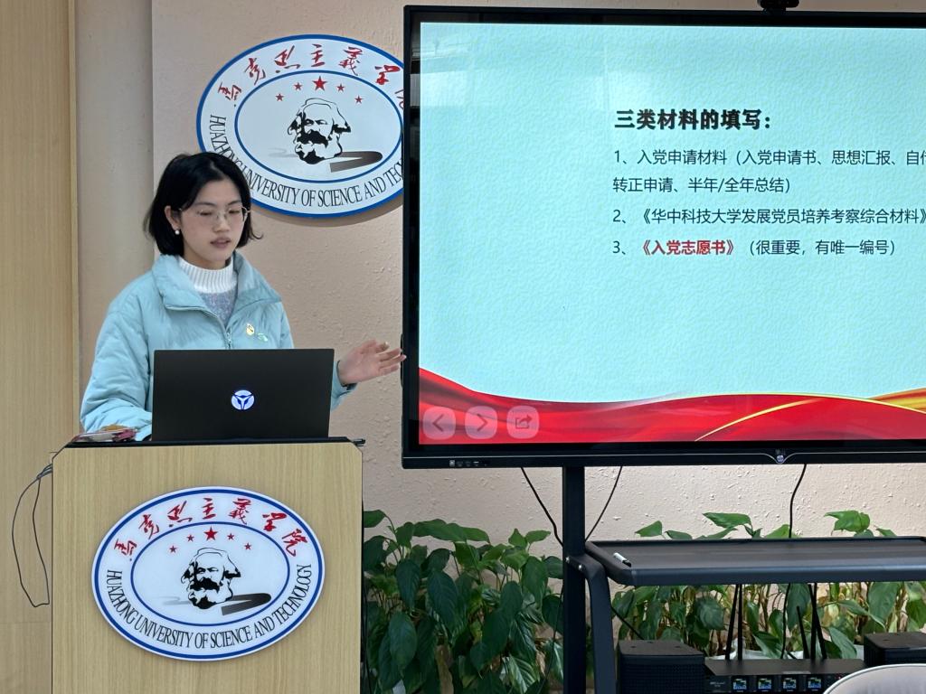隨后,第一黨小組許夢穎進行“黨建人會黨建”第一期專題課程講解。許夢穎帶領大家梳理了發(fā)展黨員的基本流程,從遞交入黨申請書開始,到確定為入黨積極分子、參加黨課培訓、確定為發(fā)展對象、進行政治審查、公示、召開支部大會討論接收預備黨員,再到預備黨員的教育考察和轉(zhuǎn)正,每一步都進行了詳細的講解。她強調(diào),入黨是一個嚴肅的過程,需要經(jīng)歷多個環(huán)節(jié)和嚴格的考察,以確保黨員的質(zhì)量和黨組織的純潔性。同時,她還對入黨材料的撰寫要求進行了詳細說明,指出材料的撰寫不僅要真實準確,還要符合黨的路線方針政策和組織要求。