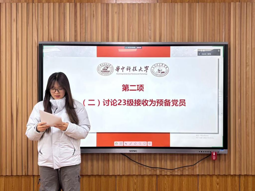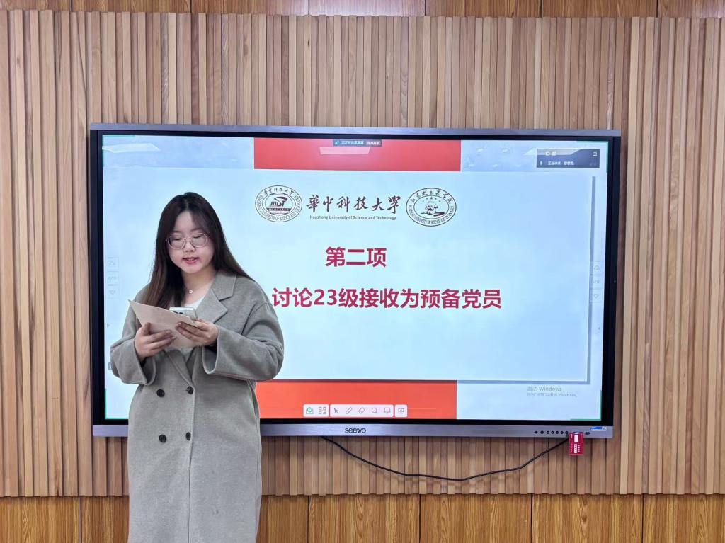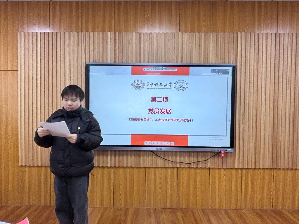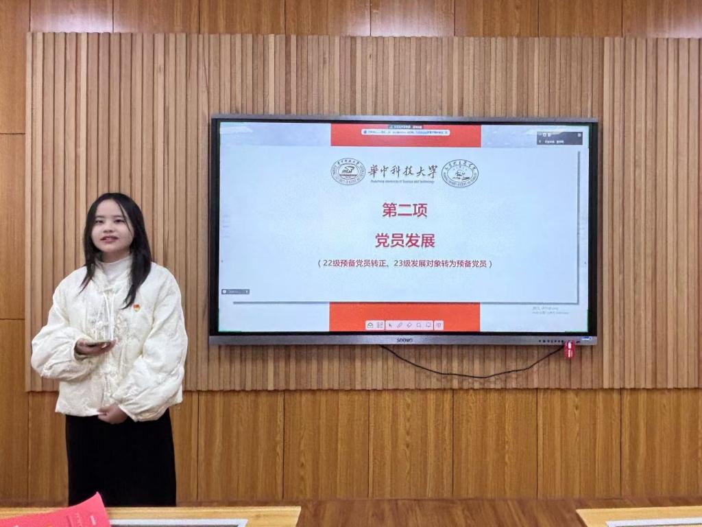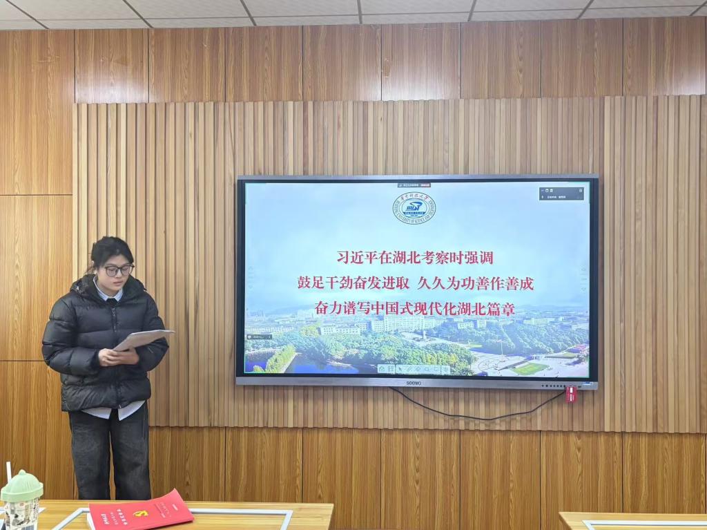 隨后,在“理論集體學環(huán)節(jié)”環(huán)節(jié),入黨積極分子朱美穎從梳理習近平總書記的考察行程、重要工作指示以及自身學習感悟方面,帶領(lǐng)支部同志更加全面深刻地學習習近平總書記考察湖北重要講話精神,并激勵各位同志要在開拓進取中發(fā)揚主動精神和斗爭意志,為實現(xiàn)中華民族偉大復興夢想貢獻青春力量。