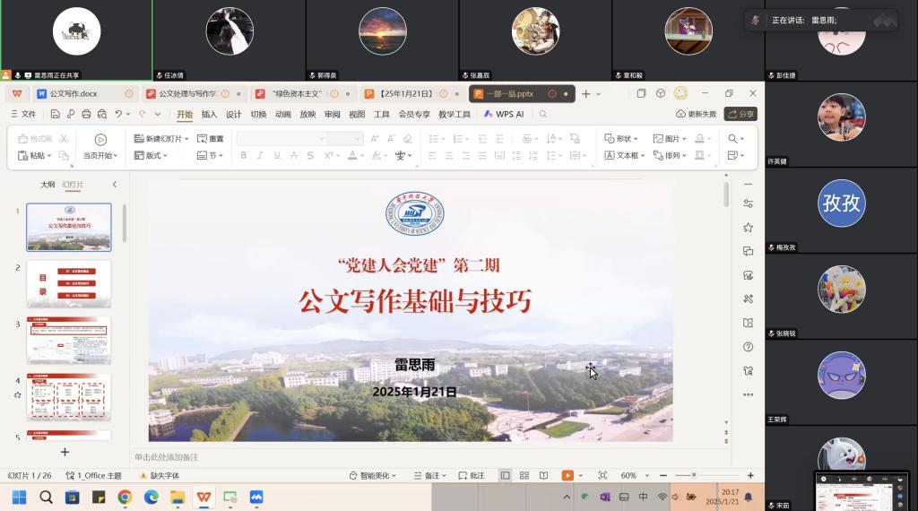隨后,在“黨建人會黨建”環(huán)節(jié)中,支部書記雷思雨為大家講授“公文寫作基礎(chǔ)與技巧”專題課程。從公文基本概念、公文寫作技巧、公文寫作提示三個方面,她帶領(lǐng)支部同志學(xué)習(xí)提升寫作質(zhì)量的方法,讓公文表意精準(zhǔn)、條理清晰,為將來的實踐和就業(yè)打下基礎(chǔ)。