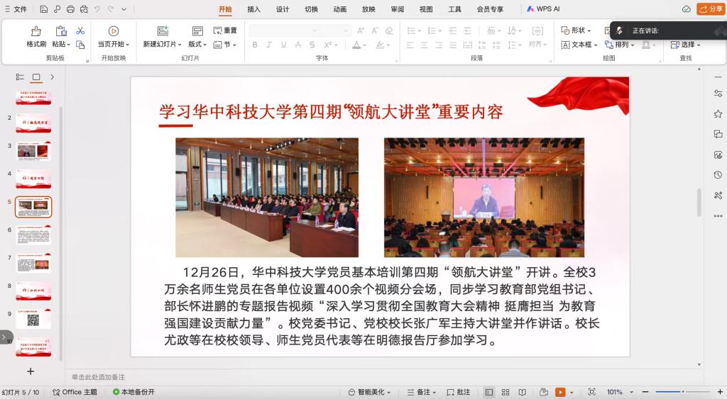 會議伊始,研究生紅色理論學(xué)講團講師屈宜凡以“追則能達,持則可圓——新年賀詞里的中國”為題講授微黨課。她生動、細致地闡述習(xí)近平總書記二〇二五年新年賀詞的豐富內(nèi)容和深刻內(nèi)涵,以賀詞中的中國步伐、人民精神和中國力量為切入點,帶領(lǐng)與會同志為祖國過去一年取得的偉大成就喝彩,為人民過去一年實現(xiàn)的偉大創(chuàng)造點贊,為未來更加有力的奮斗凝聚力量。與會同志紛紛表示,要以“追則能達,持則可圓”的精神要求自己、鼓舞自己,在新一年的學(xué)習(xí)工作中奮勇爭先、再創(chuàng)佳績。