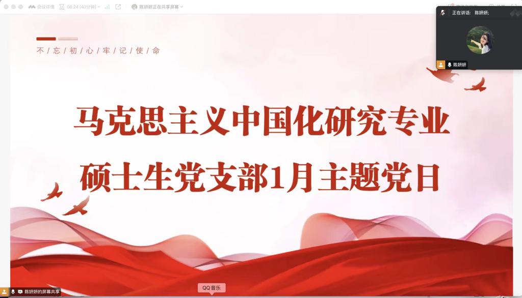 (通訊員:羅振源)為深入學(xué)習(xí)貫徹習(xí)近平總書記二〇二五年新年賀詞和學(xué)校第四期“領(lǐng)航大講堂”會議精神,按照學(xué)院有關(guān)工作要求,馬克思主義學(xué)院馬克思主義中國化研究專業(yè)碩士生黨支部1月21日于線上召開一月主題黨日,支部全體黨員參加會議,會議由黨支部書記陳妍妍主持。