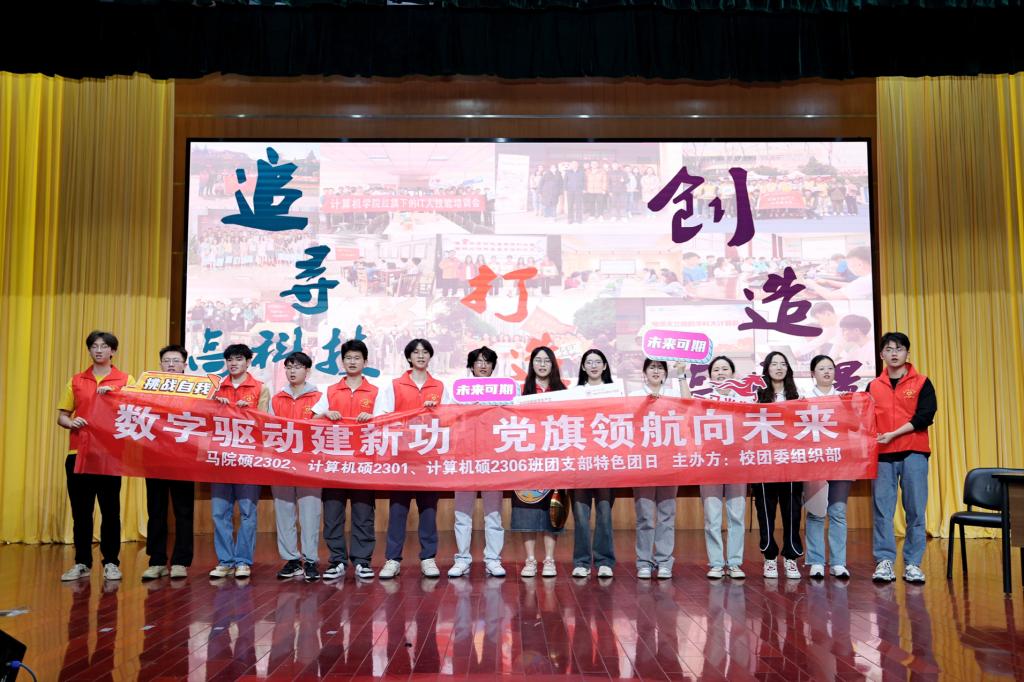 在此次校“十佳特色團(tuán)日”答辯活動中,馬院碩2302、計算機(jī)碩2301、計算機(jī)碩2306班團(tuán)支部圍繞“數(shù)字驅(qū)動建新功,黨旗引領(lǐng)向未來”的主題,以“新質(zhì)生產(chǎn)力”為靈感,結(jié)合特色情景劇,生動形象地展示了團(tuán)支部所開展的各類特色團(tuán)日活動,展現(xiàn)了團(tuán)支部成員們團(tuán)結(jié)協(xié)作,積極向上的青年面貌。