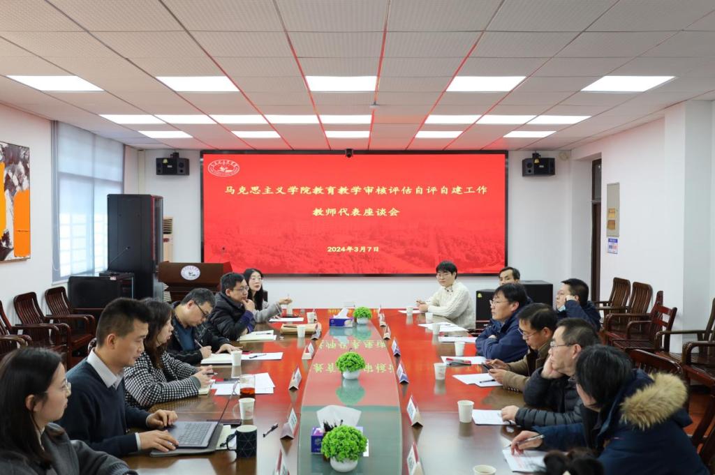 (通訊員:鄢楚)3月7日下午,馬克思主義學(xué)院教育教學(xué)審核評(píng)估自評(píng)自建工作教師代表座談會(huì)在東七樓203會(huì)議室舉辦。華中科技大學(xué)本科生院實(shí)踐教學(xué)管理科科長(zhǎng)石軍,馬克思主義學(xué)院黨委書記劉雅然,副院長(zhǎng)譚亞莉、李建國(guó),黨委副書記、副院長(zhǎng)王明飛出席會(huì)議,學(xué)院各教研室(中心)教師代表、本科教務(wù)員代利敏參與會(huì)議。會(huì)議由副院長(zhǎng)沈昊駒主持。