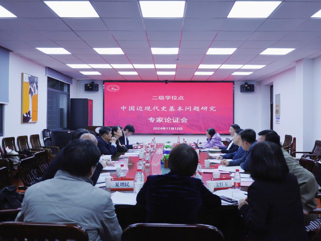 (通訊員:王姝惠)11月12日晚,馬克思主義學(xué)院中國(guó)近現(xiàn)代史基本問(wèn)題研究二級(jí)學(xué)科學(xué)位點(diǎn)專家論證會(huì)在203會(huì)議室順利召開(kāi)。國(guó)務(wù)院學(xué)科評(píng)議組召集人、武漢大學(xué)馬克思主義學(xué)院教授駱郁廷,國(guó)家萬(wàn)人計(jì)劃教學(xué)名師、武漢大學(xué)馬克思主義學(xué)院教授丁俊萍,中南民族大學(xué)馬克思主義學(xué)院院長(zhǎng)黎海波,武漢大學(xué)馬克思主義學(xué)院教授盧勇,華中師范大學(xué)馬克思主義學(xué)院教授郭明飛,武漢理工大學(xué)馬克思主義學(xué)院教授姜迎春,湖北大學(xué)馬克思主義學(xué)院教授盧國(guó)琪,華中科技大學(xué)研究生院學(xué)位辦副主任查遠(yuǎn)莉,馬克思主義學(xué)院黨委書(shū)記王學(xué)東,副院長(zhǎng)李建國(guó),國(guó)務(wù)院學(xué)科評(píng)議組成員、馬克思主義學(xué)院教授董慧,教授黃長(zhǎng)義、楊金華、梁紅、夏增民、文紅玉及部分馬克思主義學(xué)院青年教師參加此次會(huì)議,會(huì)議由馬克思主義學(xué)院院長(zhǎng)岳奎主持。