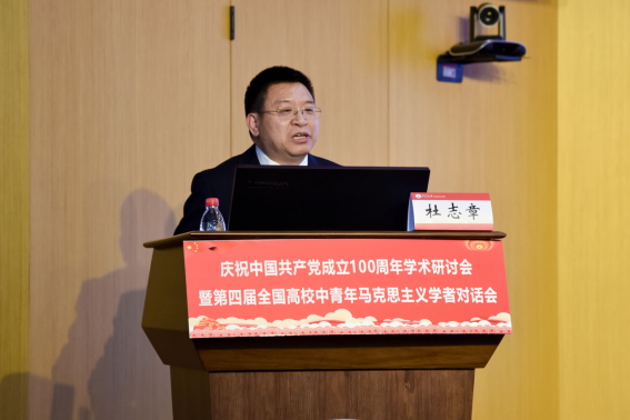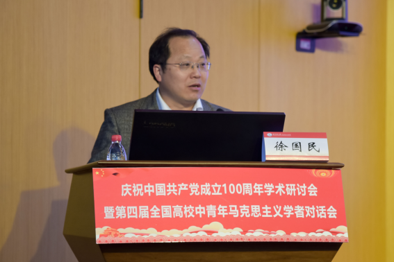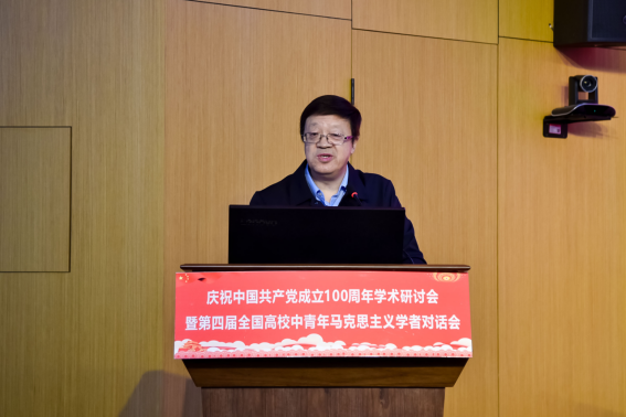 4月10日,由中共華中科技大學(xué)委員會(huì),湖北省社會(huì)科學(xué)界聯(lián)合會(huì),《思想理論教育導(dǎo)刊》、《馬克思主義理論學(xué)科研究》雜志社主辦,我院承辦的“慶祝中國(guó)共產(chǎn)黨成立100周年學(xué)術(shù)研討會(huì)暨第四屆全國(guó)高校中青年馬克思主義學(xué)者對(duì)話會(huì)”在我校舉行。來(lái)自中共中央黨校、中國(guó)社會(huì)科學(xué)院、北京大學(xué)、浙江大學(xué)、南開(kāi)大學(xué)、吉林大學(xué)、上海交通大學(xué)、西安交通大學(xué)、四川大學(xué)、山東大學(xué)、東北師范大學(xué)、同濟(jì)大學(xué)、武漢大學(xué)等近20所院校,以及《求是》《馬克思主義研究》《學(xué)習(xí)與實(shí)踐》《學(xué)校黨建與思想教育》《學(xué)術(shù)界》《理論與改革》等雜志期刊的專家學(xué)者參加會(huì)議。湖北省社會(huì)科學(xué)界聯(lián)合會(huì)黨組書(shū)記、常務(wù)副主席喻立平,副主席安向榮和我校副校長(zhǎng)許曉東參加開(kāi)幕式。