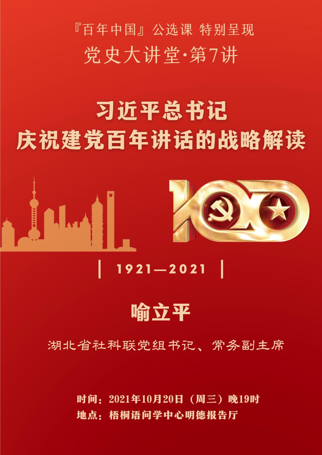 華中科技大學(xué)黨史大講堂第7講:習(xí)近平總書(shū)記慶祝建黨百年講話的戰(zhàn)略解讀