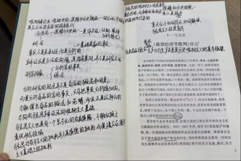 活動伊始,楊成林強調學習和理解馬克思主義著作必需秉持嚴謹的學術態(tài)度,形成批判性思維。他圍繞馬克思主義方法論展開論述,深入淺出地探討了方法論的三個層面:唯物辯證法和唯物史觀、具體分析和綜合方法,以及邏輯和歷史的統(tǒng)一作為連接方法論和具體方法的中間層面。進而指出,對于客觀事實的分析是構成馬克思主義辯證法的唯物主義基礎。在導讀序言前,楊成林簡要介紹了馬克思本人的成長背景,分析了馬克思的精神特征及其早期思想的形成過程和影響因素。接著,他詳細分析了《政治經濟學批判》的內容結構,指出“資本”是一定階級和利益關系的體現,政治經濟學研究的核心是階級利益關系,而非單純的物質工具或生產過程。最后,他帶領同學們著重探討了馬克思主義經濟學中關于抽象與具體的分析方法,即如何通過從個別到一般,再從一般到個別的過程來理解經濟現象,指出勞動、資本等概念在不同歷史時期和經濟關系中存在意義變化,在具體分析過程中要做到邏輯與歷史的統(tǒng)一。楊成林旁征博引,結合具體案例對馬克思經典著作進行了深入的研讀,與會眾人都表示受益匪淺。