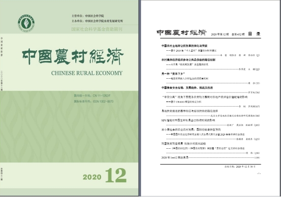 《中國農村經(jīng)濟》是國內農業(yè)經(jīng)濟學學科的頂級期刊,亦為我校人文社科領域B類權威期刊。其由中國社會科學院主管、中國社會科學院農村發(fā)展研究所主辦,是中國有關三農問題的高水準學術期刊。根據(jù)《中國學術期刊影響因子年報》(2020版),在農業(yè)經(jīng)濟類51種學術期刊中,《中國農村經(jīng)濟》影響力指數(shù)和影響因子均名列第一,在489種經(jīng)濟學學術期刊中,《中國農村經(jīng)濟》綜合影響因子排名第三,并獲評“中國最具國際影響力學術期刊”。