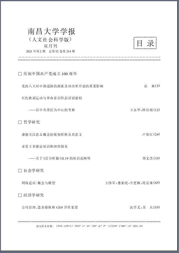 《南昌大學(xué)學(xué)報》(人文社會科學(xué)版)2021年4月第52卷第2期刊發(fā)我院岳奎教授的學(xué)術(shù)論文《黨的八大對中國道路的探索及對改革開放的重要影響》。