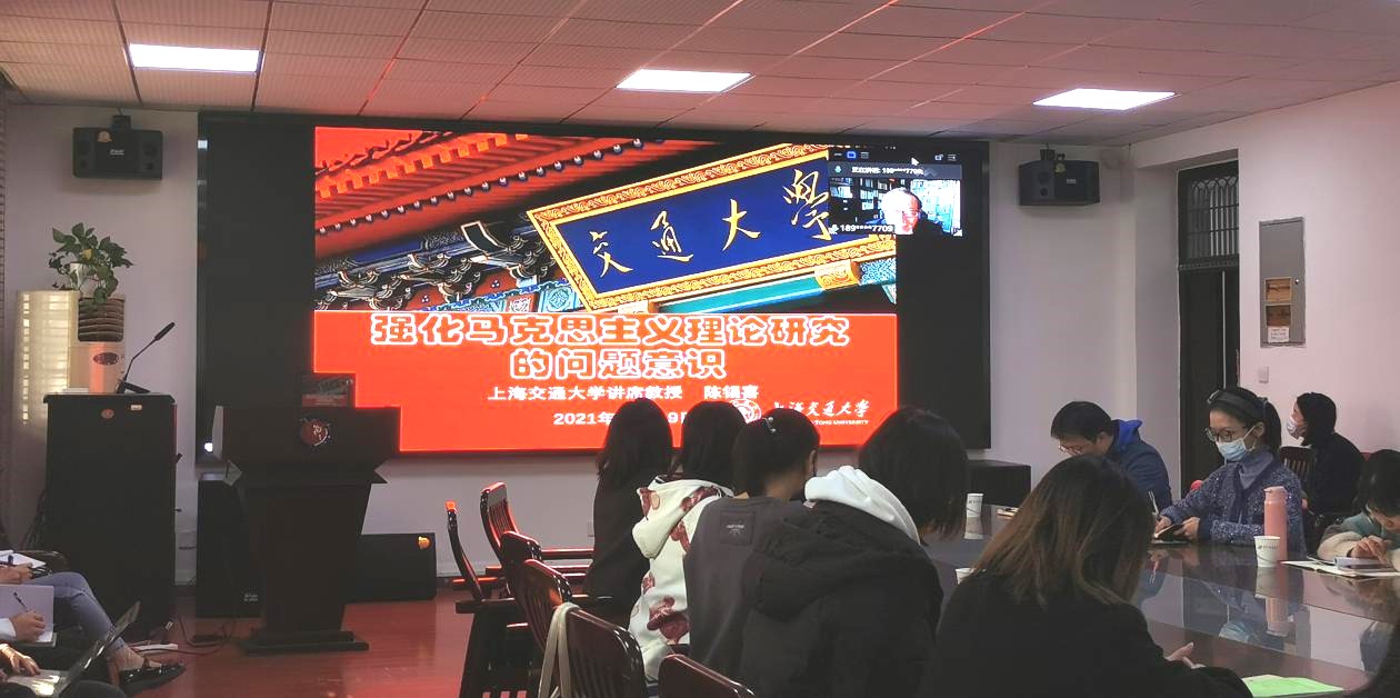 11月19日下午,第78期喻園求真學(xué)術(shù)講座在東七樓203舉行。上海交通大學(xué)馬克思主義學(xué)院教授陳錫喜應(yīng)邀為我院師生作題為《強(qiáng)化馬克思主義理論研究的問題意識》的學(xué)術(shù)講座。學(xué)院領(lǐng)導(dǎo)班子、教師代表以及研究生、博士生參加,副院長譚亞莉主持本次講座。