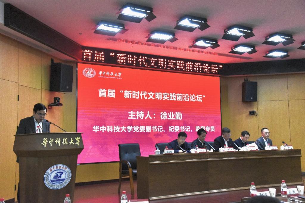 4月15日,首屆“新時代文明實踐前沿論壇”在華中科技大學(xué)舉行。中央文明辦二局局長熊大同,湖北省委宣傳部副部長黃學(xué)龍,中國工程院院士、校長尤政,國家哲學(xué)社會科學(xué)一級教授、原中央黨校校委委員韓慶祥,人大常委、教科文衛(wèi)委員會副主任、湖北省新時代文明實踐研究院名譽院長喻立平參加開幕式,開幕式由校黨委副書記、紀委書記徐業(yè)勤主持。