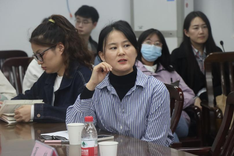 交流討論環(huán)節(jié)中,2023級碩士生、院新聞中心干事牟倩,2022級碩士生顏瑞華和崔美嬌老師就新聞寫作方面的困惑與夏老師展開交流探討。