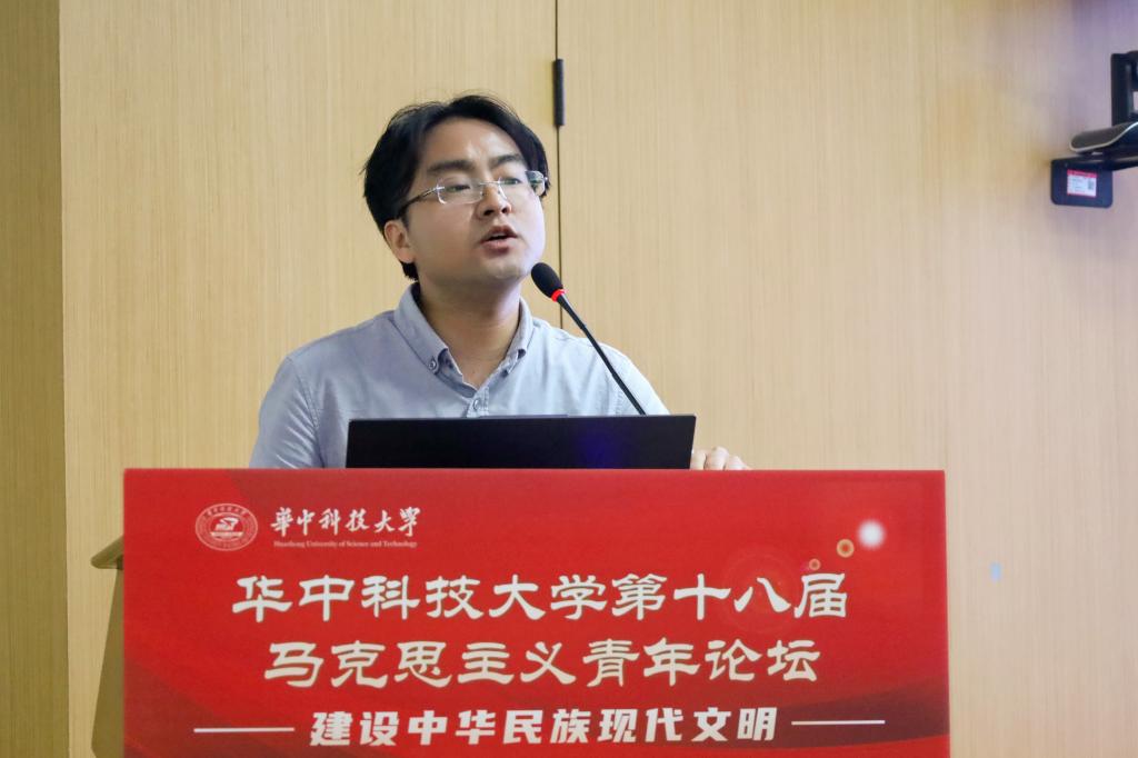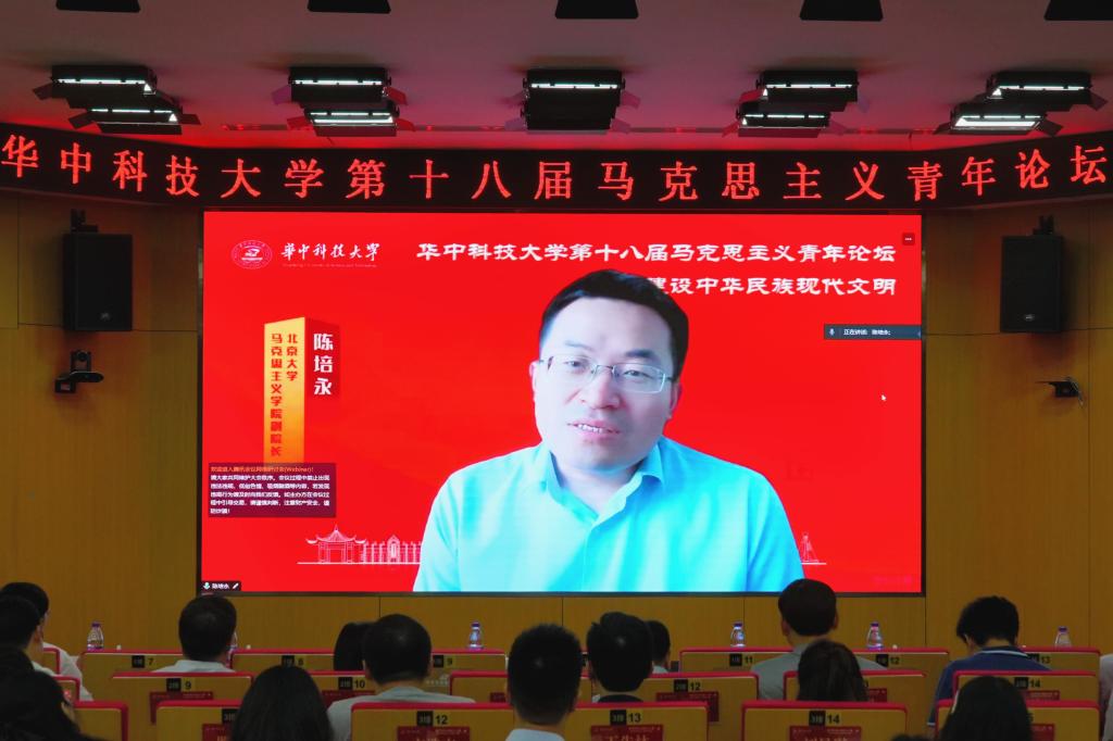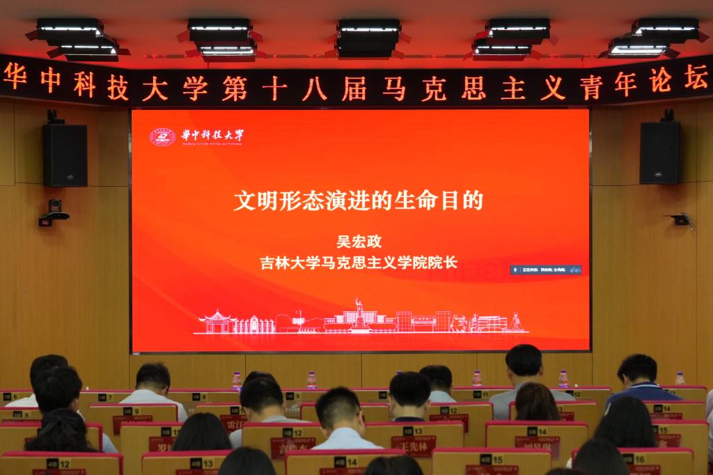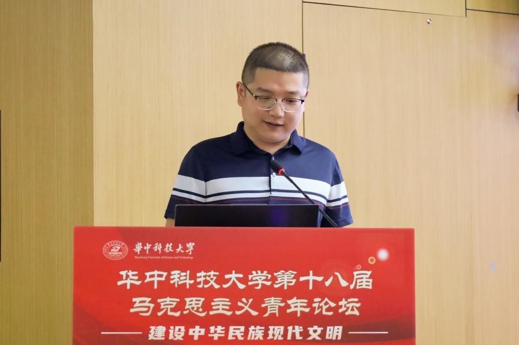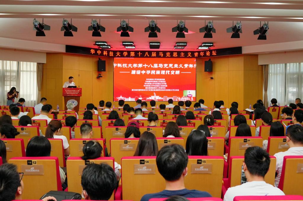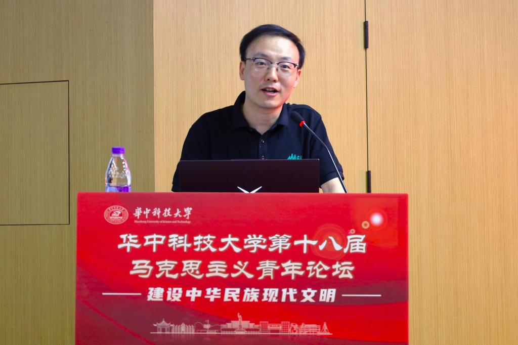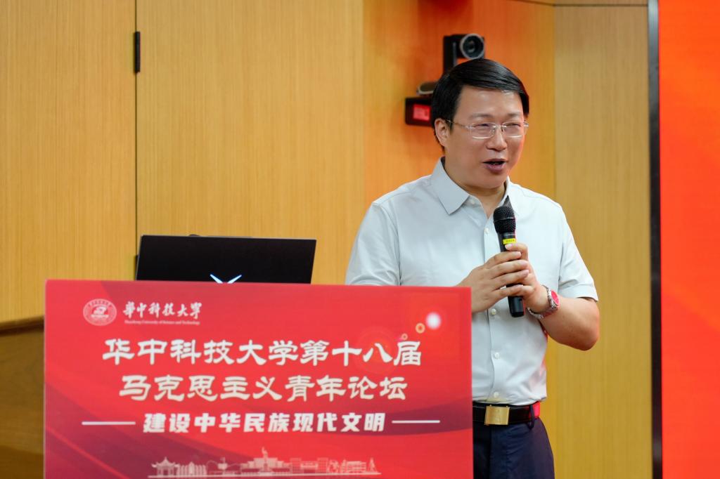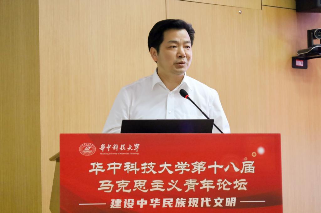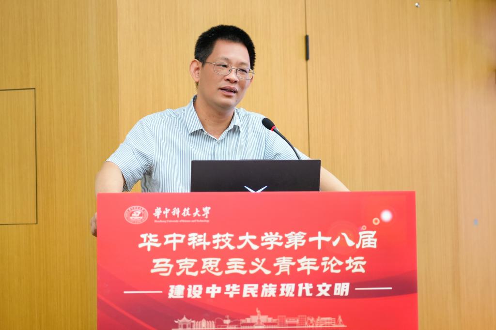 (通訊員:徐薇 楊夢(mèng)楠)6月15日,由華中科技大學(xué)黨委宣傳部、共青團(tuán)華中科技大學(xué)委員會(huì)、華中科技大學(xué)馬克思主義學(xué)院、華中科技大學(xué)馬克思主義研究院、湖北省高校青年工作研究會(huì)、湖北省中國(guó)特色社會(huì)主義理論體系研究中心華中科技大學(xué)分中心共同舉辦的華中科技大學(xué)第十八屆馬克思主義青年論壇在八號(hào)樓求實(shí)報(bào)告廳順利舉辦。來自我校和北京大學(xué)、武漢大學(xué)、吉林大學(xué)等多所高校和研究機(jī)構(gòu)的專家學(xué)者、青年學(xué)子共聚一堂,共同為中華民族現(xiàn)代文明和社會(huì)主義文化強(qiáng)國(guó)建設(shè)貢獻(xiàn)智慧。湖北省社科聯(lián)第九屆委員會(huì)主席、教授趙凌云,湖北省人大常委、人大教科文衛(wèi)委員會(huì)副主任喻立平,華中科技大學(xué)黨委副書記謝正學(xué),黨委宣傳部常務(wù)副部長(zhǎng)詹健,團(tuán)委書記羅迪,人文社會(huì)科學(xué)處副處長(zhǎng)童文勝,馬克思主義學(xué)院黨委書記王學(xué)東,院長(zhǎng)岳奎,黨委副書記、副院長(zhǎng)王明飛,馬克思主義研究院副院長(zhǎng)梁浩偉以及來自全國(guó)各地高校的專家學(xué)者、青年學(xué)子共同參與此次會(huì)議。