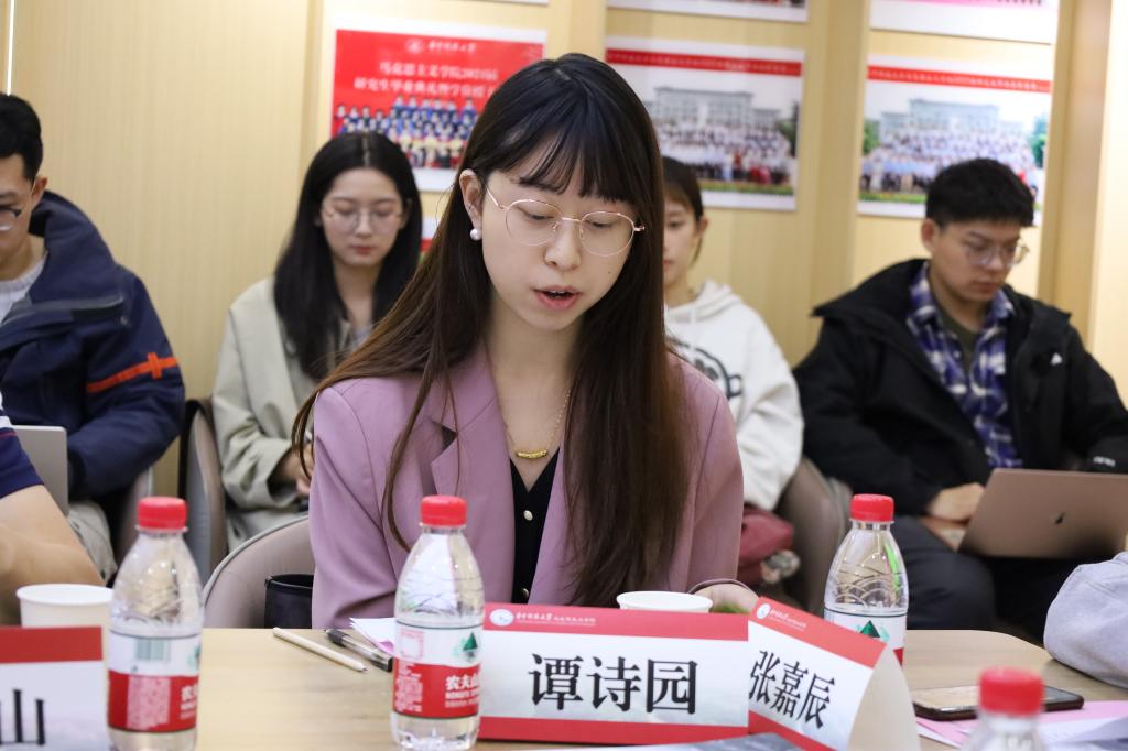 2022級碩士研究生譚詩園從人文理念、專業(yè)態(tài)度和長遠目光三個方面分享了自己參與采錄工作的經驗和心得。她認為,參與口述史工作,必須秉持嚴謹?shù)膽B(tài)度,立足于立言、立德、立功的目標,在全面記錄的基礎上注重情感傳遞,確保歷史的真實性和完整性,在采錄過程中要保持專業(yè)態(tài)度,對老戰(zhàn)士抱有尊重和耐心。同時,她認為應將課題組對口述資料的采錄與整理成果融入思政課,增強教育的實效性和感染力,幫助學生了解和銘記這段歷史,激發(fā)愛國情懷,傳承革命精神。