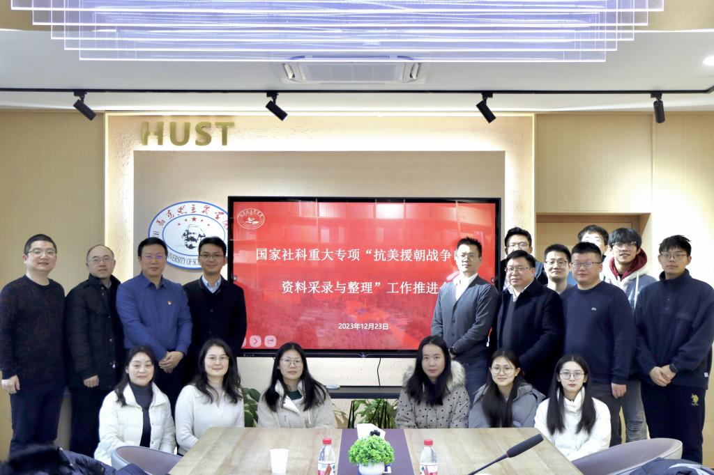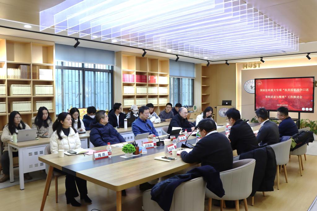 (通訊員:劉長夏)12月23日上午,國家社科基金重大專項(xiàng)“抗美援朝戰(zhàn)爭口述資料采錄與整理”工作推進(jìn)會在華中科技大學(xué)馬克思主義學(xué)院舉行。湖北省社會科學(xué)規(guī)劃辦公室干部胡彪,華中科技大學(xué)人文社會科學(xué)處副處長童文勝、副處長杜志章、項(xiàng)目成果辦主任張哲,華中科技大學(xué)馬克思主義學(xué)院院長、重大專項(xiàng)負(fù)責(zé)人岳奎,子課題負(fù)責(zé)人馬克思主義學(xué)院杜志章教授、尹旦萍教授、李翔副教授、呂宏山副教授以及湖北工業(yè)大學(xué)鄭翠仙副教授出席會議,課題組其他成員以及馬克思主義學(xué)院辦公室主任、科研秘書周洋參加會議。會議由華中科技大學(xué)人文社科處副處長杜志章教授主持。