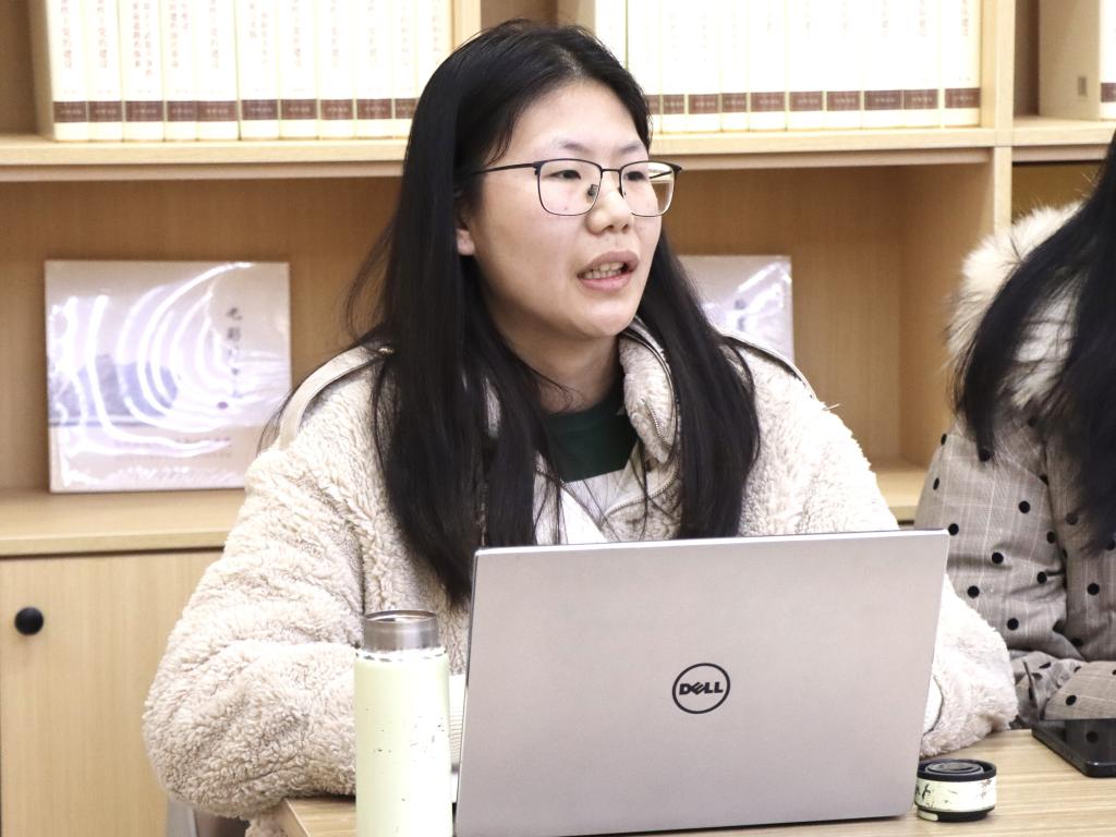 2023級碩士研究生梅孜孜認(rèn)為,在采訪的過程中戰(zhàn)士的愛國情懷和保家衛(wèi)國的決心深深打動著自己,老戰(zhàn)士的故事就是一堂生動的“思政課”,全過程的培訓(xùn)和集中學(xué)習(xí)也加強(qiáng)了同學(xué)們對訪談研究法的了解和運(yùn)用。此外,她從自身經(jīng)歷出發(fā),就聯(lián)系訪談對象、理解訪談內(nèi)容等工作難點(diǎn)進(jìn)行了匯報。
