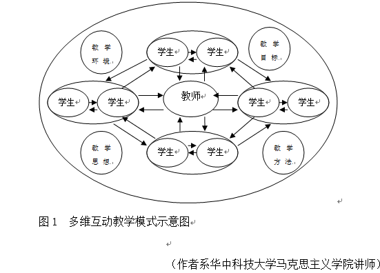 “多維互動(dòng)教學(xué)”是在開放的教育系統(tǒng)中,通過(guò)深化和優(yōu)化教學(xué)互動(dòng)方式,使教師、學(xué)生、教學(xué)方法、教學(xué)手段、教學(xué)設(shè)施、教學(xué)政策、文化氛圍等和教學(xué)有關(guān)的各種資源和要素,在教學(xué)過(guò)程中產(chǎn)生不同形式、不同性質(zhì)、不同程度的相互作用和影響。它是破解傳統(tǒng)高校思政課堂重教有余,重學(xué)不足;灌輸有余,啟發(fā)不足;理論講的多而解決實(shí)際問(wèn)題少,實(shí)效性欠缺等問(wèn)題的有效方法。
