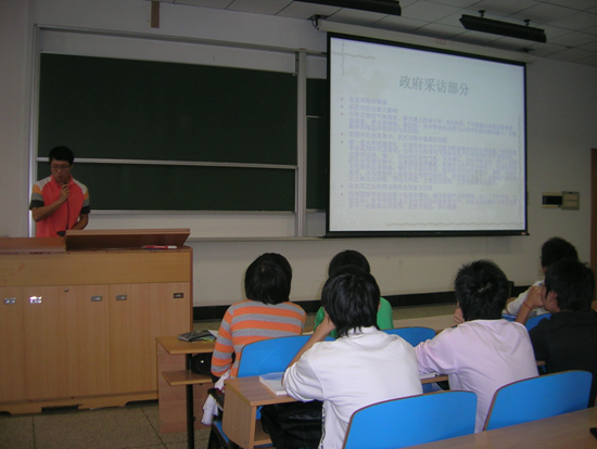 自動(dòng)化0902班的鄒天明同學(xué)在作“自動(dòng)化與國(guó)家社會(huì)發(fā)展關(guān)系”的講座