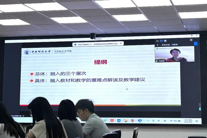 (通訊員:崔飛燕)9月8日上午,“思想道德與法治”(以下簡稱“德法”)教研室于東七樓203會議室召開本學(xué)期第一次名師集體備課會。中央財(cái)經(jīng)大學(xué)馬克思主義學(xué)院教授、博士生導(dǎo)師、馬克思主義理論研究和建設(shè)工程專家、教育部馬克思主義理論類專業(yè)教指委委員、北京市“思想道德與法治”研究會副會長馮秀軍應(yīng)邀線上出席本次備課會。馬克思主義學(xué)院副院長譚亞莉、李建國,專職教師與雙聘教師等二十余位老師參加會議,會議由教研室主任萬晶晶主持。