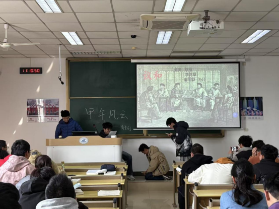 為探索思政課教學(xué)方式、激活歷史教育功能,3月19日至20日,《中國近現(xiàn)代史綱要》課程(以下簡稱“史綱”)青年教師劉榮琴以“歷史情境劇”為載體,組織學(xué)生編排并演繹《甲午風(fēng)云》小劇場。通過角色代入、場景重構(gòu)與思辨討論,學(xué)生們跨越時空直面130年前的民族危局,在沉浸式體驗中剖析列強侵略的多維圖景,感悟歷史規(guī)律與時代責(zé)任。