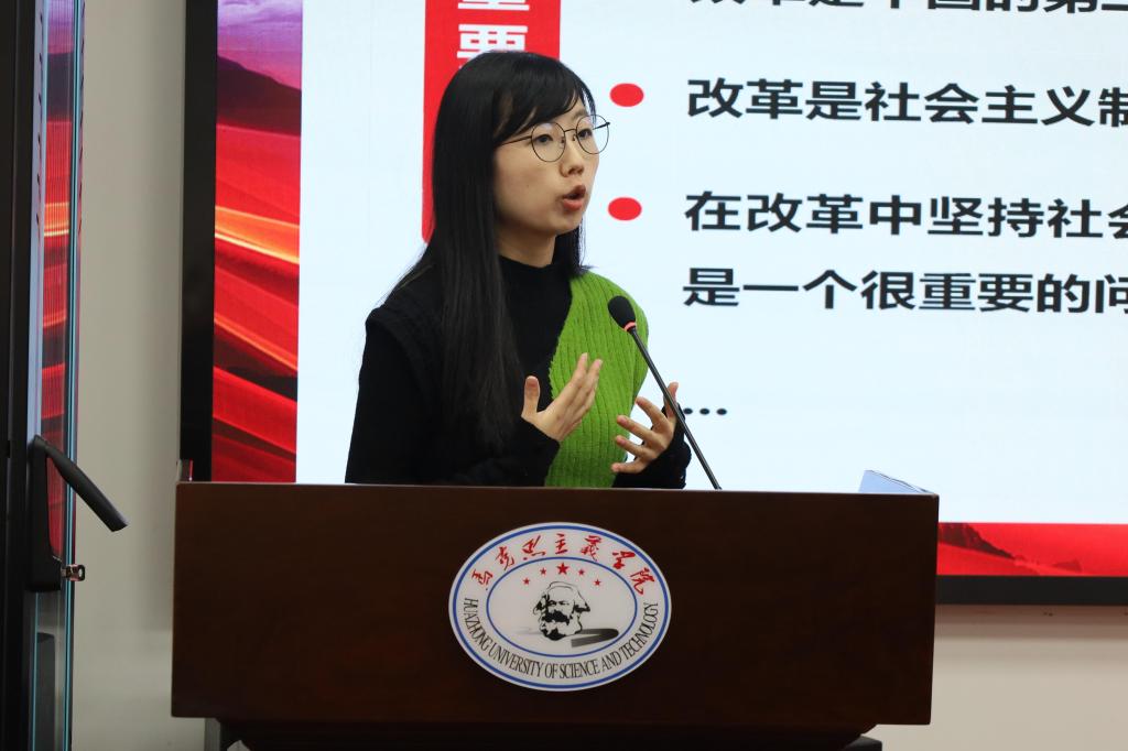 接著,唐麗敏和丁滋芳圍繞“黨的二十屆三中全會精神融入概論課”進(jìn)行了深入探討。唐麗敏提出應(yīng)以當(dāng)前我國經(jīng)濟(jì)科技發(fā)展成就以及民生改善現(xiàn)狀的時事熱點(diǎn)進(jìn)行引入,串聯(lián)起黨的歷次三中全會的成果,明確改革是社會主義制度的自我完善和發(fā)展,將進(jìn)一步全面深化改革的精神系統(tǒng)融入整個課程教學(xué)體系。丁滋芳提出,應(yīng)通過梳理改革的歷程,闡述全面深化改革的性質(zhì)、方向、目的和原則,從而通過理論教學(xué)幫助學(xué)生更好把握改革中“變”與“不變”的辯證關(guān)系,理解當(dāng)前深化改革的方向和意義。