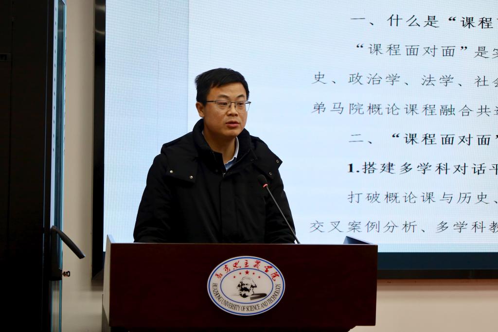 會議伊始,閆帥首先介紹了本學(xué)期“概論”教研室的總體教學(xué)任務(wù),并簡要說明了本次會議議程,希望通過本次會議展開深度探討與交流,凝聚共識,深化理論講授,提升教學(xué)質(zhì)量,創(chuàng)新教學(xué)方法。