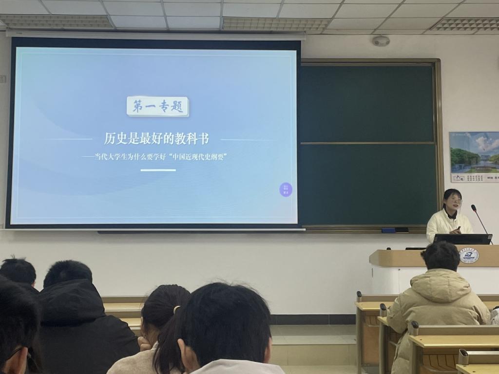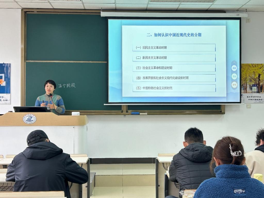 (通訊員:曾雨涵 黃麗芬 楊躍 彭邦凱 馬思琪 李佳怡 李艷陽(yáng) 鐘鈺)春?jiǎn)⑿略窛?rùn)初心。2月17日,我校數(shù)名本科生迎來(lái)了《中國(guó)近現(xiàn)代史綱要》課程的“開學(xué)第一課”。為打造有厚度、有深度、有溫度的歷史課堂,我校馬克思主義學(xué)院中國(guó)近現(xiàn)代史綱要教研室以“沉浸式育人”為核心理念,通過(guò)深耕教學(xué)內(nèi)容、創(chuàng)新教學(xué)設(shè)計(jì),引入智慧教學(xué)手段,打造了“內(nèi)容可視化、知識(shí)結(jié)構(gòu)化、實(shí)踐場(chǎng)景化”的多元教學(xué)課堂。教師們精心準(zhǔn)備的“開學(xué)第一課”在運(yùn)用多媒體技術(shù)重現(xiàn)歷史的同時(shí),引入互動(dòng)研討啟迪學(xué)生思考,引導(dǎo)青年學(xué)子在探尋歷史脈絡(luò)中積蓄前行動(dòng)力,在觀照古今變遷中厚植家國(guó)情懷。