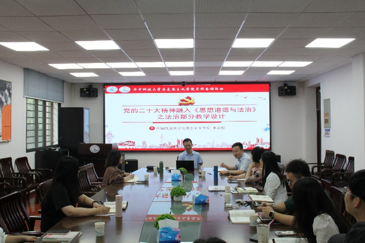 (通訊員:林欣蕓)6月8日下午,“思想道德與法治”教研室于東七樓203會(huì)議室召開(kāi)名師集體備課會(huì)。中國(guó)政法大學(xué)馬克思主義學(xué)院教授、博士生導(dǎo)師、中央馬克思主義理論研究與建設(shè)工程專家、北京市優(yōu)秀教師、北京市思想道德與法治研究會(huì)副秘書(shū)長(zhǎng)、北京市思想政治理論課特級(jí)教師李志強(qiáng)應(yīng)邀出席備課會(huì)。馬克思主義學(xué)院副院長(zhǎng)李建國(guó)、譚亞莉,專職教師梁紅、白萍、趙志堅(jiān)、張冬靜等,岐尚鮮、李世昊等雙聘教師共近20位老師參加會(huì)議,會(huì)議由教研室主任萬(wàn)晶晶主持。