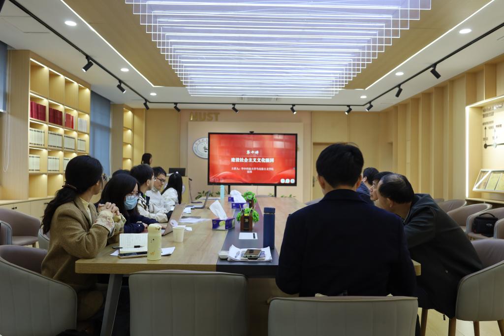 隨后,備課會(huì)進(jìn)入青年教師說課環(huán)節(jié)。張煒以建設(shè)社會(huì)主義文化強(qiáng)國為主題,從教材分析和學(xué)情分析、教學(xué)目標(biāo)和教學(xué)重難點(diǎn)、教學(xué)方法和教學(xué)過程等方面展開說課,并通過問題討論和多媒體教學(xué)的方式幫助學(xué)生深刻理解該節(jié)內(nèi)容的核心內(nèi)涵和價(jià)值意義。