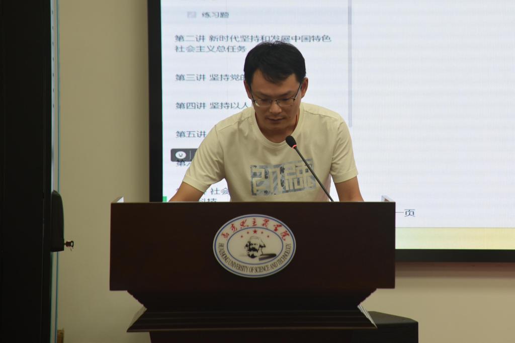 最后,院長岳奎作總結(jié)講話。他首先圍繞教研中心的全體教師提出要求,強調(diào)在所有的課程安排中,教研中心對課堂質(zhì)量的要求始終是擺在第一位的。作為高校思政課程的重要組成部分,《習(xí)近平新時代中國特色社會主義思想概論》這一門課程對于學(xué)生把握時代脈搏、融入時代發(fā)展具有重要意義。在黨中央和學(xué)校對思想政治理論課提出理論與實踐相結(jié)合更高要求的背景下,任課教師必須提高政治站位,確保授課內(nèi)容全面且深入透徹。同時,充分利用線上平臺的優(yōu)勢,將其作為課堂教學(xué)的有效補充,進一步強化思想政治理論課在學(xué)生價值觀塑造中的重要作用。
