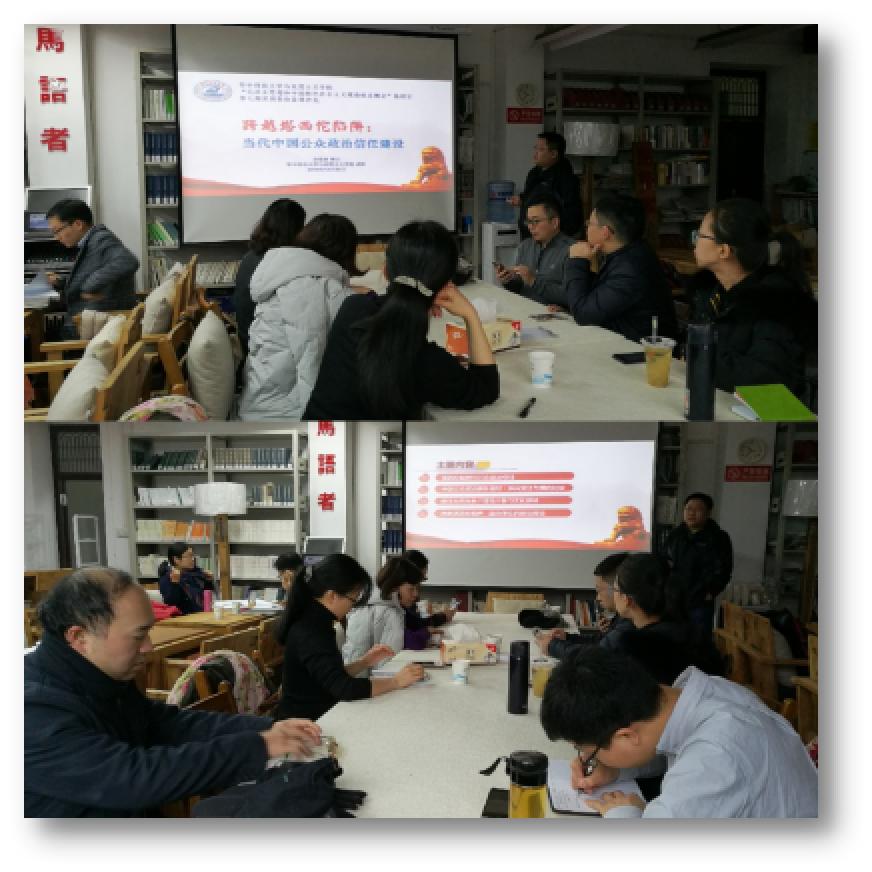 何為“塔西佗陷阱”?我們要如何認(rèn)識塔西佗陷阱?又應(yīng)該怎樣跨越塔西佗陷阱? 圍繞這一系列問題,余泓波博士展開了以“跨越塔西佗陷阱:當(dāng)代中國公眾政治信任建設(shè)”為主題的講課。在授課中,余泓波老師以“從塔西佗陷阱看公眾政治信任、中國公眾政治信任的縱向變遷和橫向比較、產(chǎn)生信任的兩條理論脈絡(luò),以及如何跨越塔西佗陷阱,建設(shè)民眾的政治信任”四個部分展開論述。通過嚴(yán)密的邏輯、豐富的案例、翔實(shí)的數(shù)據(jù)、生動的圖表,加深了老師們對該主題的認(rèn)識與把握。余老師講完之后,老師們圍繞“民眾對政府抽象層面的信任與具體事件中的信任是否存在差異”、“公眾政治信任橫向比較中區(qū)域比較的優(yōu)勢”、“群眾路線與政府公信力的關(guān)系”等進(jìn)行了熱烈討論。通過討論,老師們表示收獲頗豐,更加深刻地認(rèn)識到了“走群眾路線”、“以人民為中心的發(fā)展”等黨的理論的重要意義與實(shí)踐價(jià)值。
