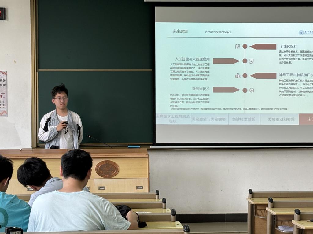 生物醫(yī)學工程的楊博棱、楊喆、劉博、顏久鵬和王眾等同學從生物醫(yī)學工程背景及現(xiàn)狀出發(fā),根據(jù)國家政策與國家發(fā)展需求,以醫(yī)學影像技術為例介紹關鍵技術創(chuàng)新,提出“人工智能與大數(shù)據(jù)應用、微納米技術、個性化醫(yī)療、神經(jīng)工程與腦機接口技術”四大領域突破性發(fā)展有望為生物醫(yī)學工程領域帶來革命性變革,并從專業(yè)發(fā)展驅動和能力要求激勵未來學院的同學,立志這四大領域的研究,為我國核心技術突破貢獻力量。