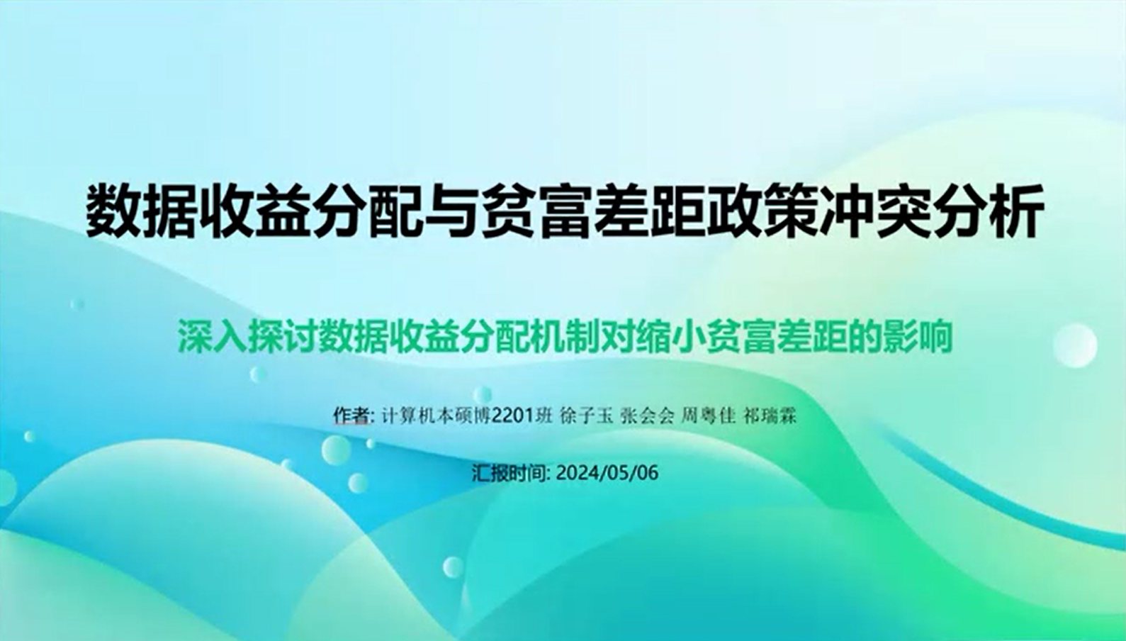 計算機專業(yè)的同學(xué)們同樣通過視頻的形式為大家?guī)硭麄兊姆窒怼_@一小組聚焦了一個前沿且極具社會意義的主題——數(shù)據(jù)收益分配與貧富差距政策沖突分析,深入探討了數(shù)據(jù)收益分配的現(xiàn)狀及其背后的機制。他們利用大數(shù)據(jù)分析和機器學(xué)習(xí)技術(shù),揭示了數(shù)據(jù)收益在不同群體之間的分配情況,并指出,在追求數(shù)據(jù)收益最大化的同時,往往會導(dǎo)致貧富差距的進一步拉大。這是因為數(shù)據(jù)資源的占有和使用往往是不平等的,而這種不平等又加劇了經(jīng)濟和社會的不平等。因此,如何平衡數(shù)據(jù)收益與貧富差距之間的關(guān)系,成為了一個亟待解決的問題。通過本次小組展示,計算機專業(yè)的同學(xué)們希望能夠引起大家對數(shù)據(jù)收益分配問題的關(guān)注,并激發(fā)更多人思考如何在數(shù)字化時代實現(xiàn)更加公平和可持續(xù)的發(fā)展。