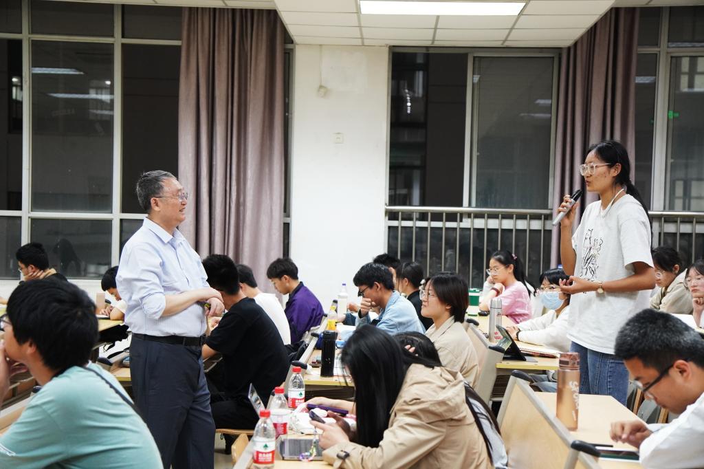 隨后,路小可老師向同學(xué)們展示了新中國(guó)建國(guó)初期歸國(guó)留學(xué)生及海外學(xué)子的光輝事跡,細(xì)致闡釋了我國(guó)無(wú)數(shù)學(xué)子在振興中華的征程中為了祖國(guó)的未來(lái)前赴后繼、無(wú)私奉獻(xiàn)的奮斗歷程。他以時(shí)代楷模黃大年為例,講述了其以實(shí)際行動(dòng)踐行“振興中華乃我輩職責(zé)”的諾言,為中國(guó)的深部探測(cè)技術(shù)做出杰出貢獻(xiàn),充分展現(xiàn)擔(dān)當(dāng)奉獻(xiàn)精神的故事。