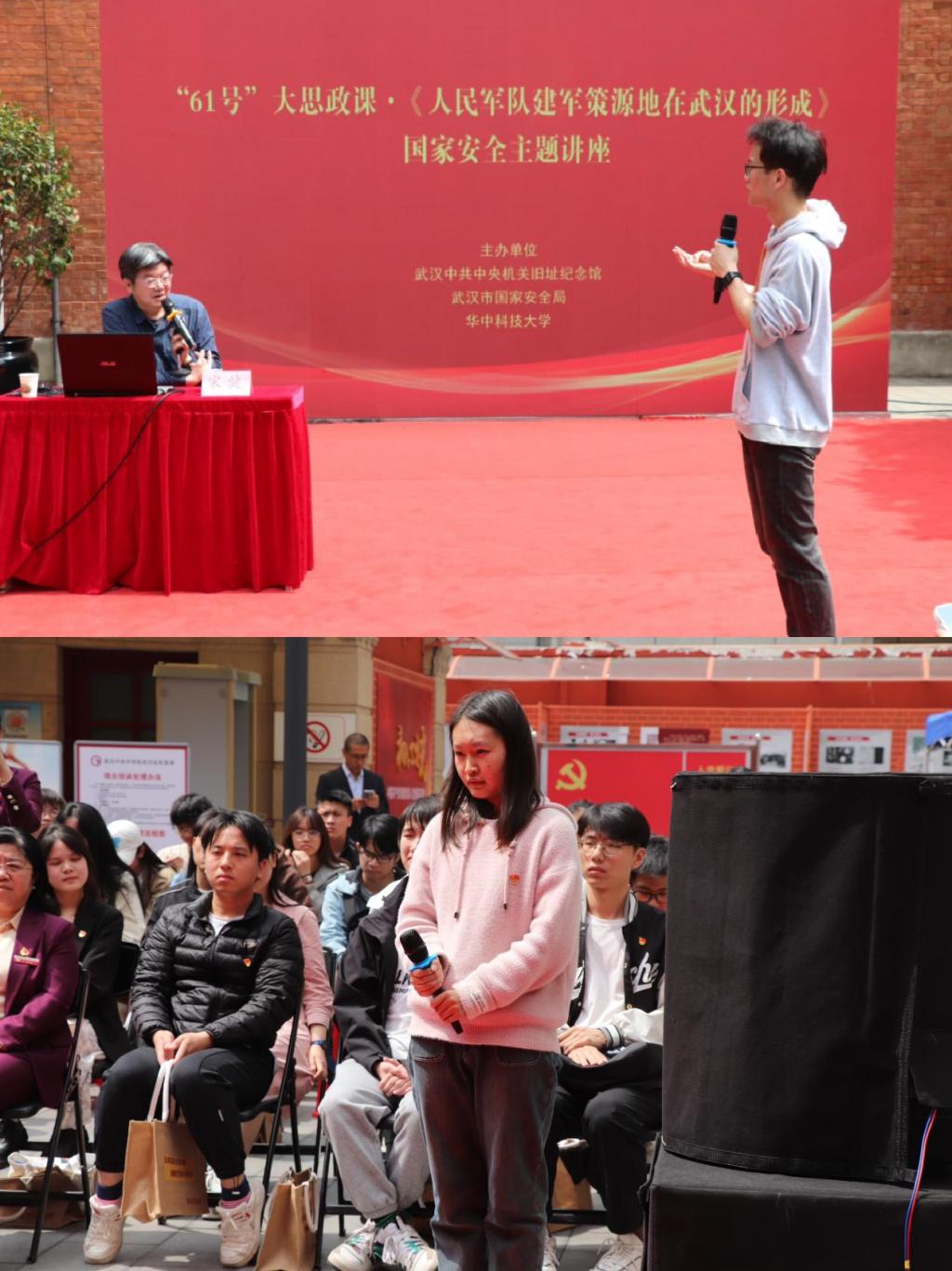 活動伊始,著名黨史專家、武漢市委黨史研究室一級調(diào)研員、武漢市黨史宣講團副團長宋健以《人民軍隊建軍策源地在武漢的形成》為講題,引領(lǐng)60余名學(xué)子跨越百年的歷史長河,深入挖掘了人民軍隊建立背后的故事。通過這次講座,同學(xué)們深刻領(lǐng)會了中國共產(chǎn)黨在大革命時期為了國家獨立與民族解放所付出的不懈努力。現(xiàn)場氣氛活躍,同學(xué)們熱情高漲,紛紛提問互動,充分展現(xiàn)了大家對黨史、軍史學(xué)習(xí)的濃厚興趣和對總體國家安全的高度關(guān)切。