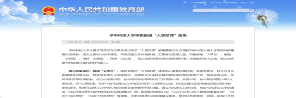 圖為2023年6月29日教育部網(wǎng)站推介我校“大思政課”建設(shè)工作特色亮點(diǎn)經(jīng)驗(yàn)